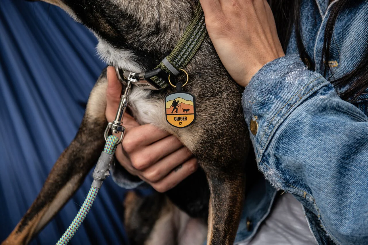 Charcoal QALO Collar & Base Camp Silicone Dog ID Tag Set