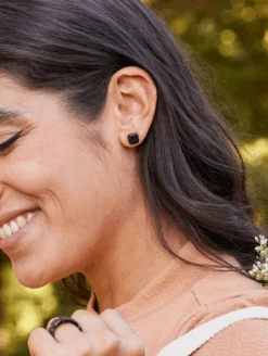 The holiday edition Emme earrings are available in a shimmering emerald or a subtly sparkling onyx, and pair perfectly with our Emme ring and Emme bracelet.Ā