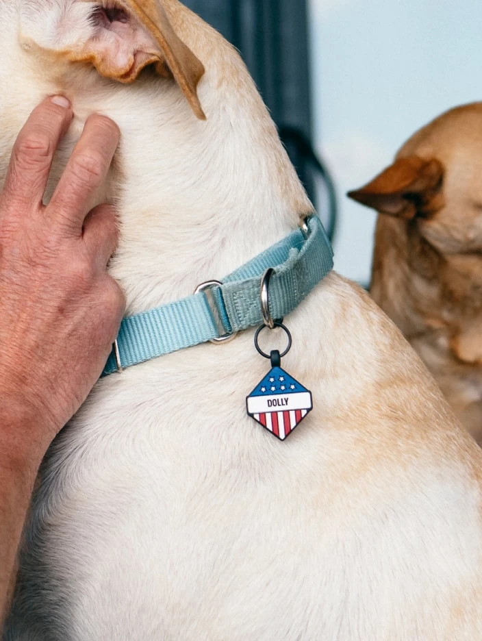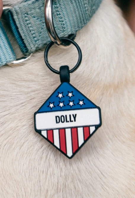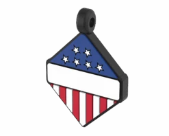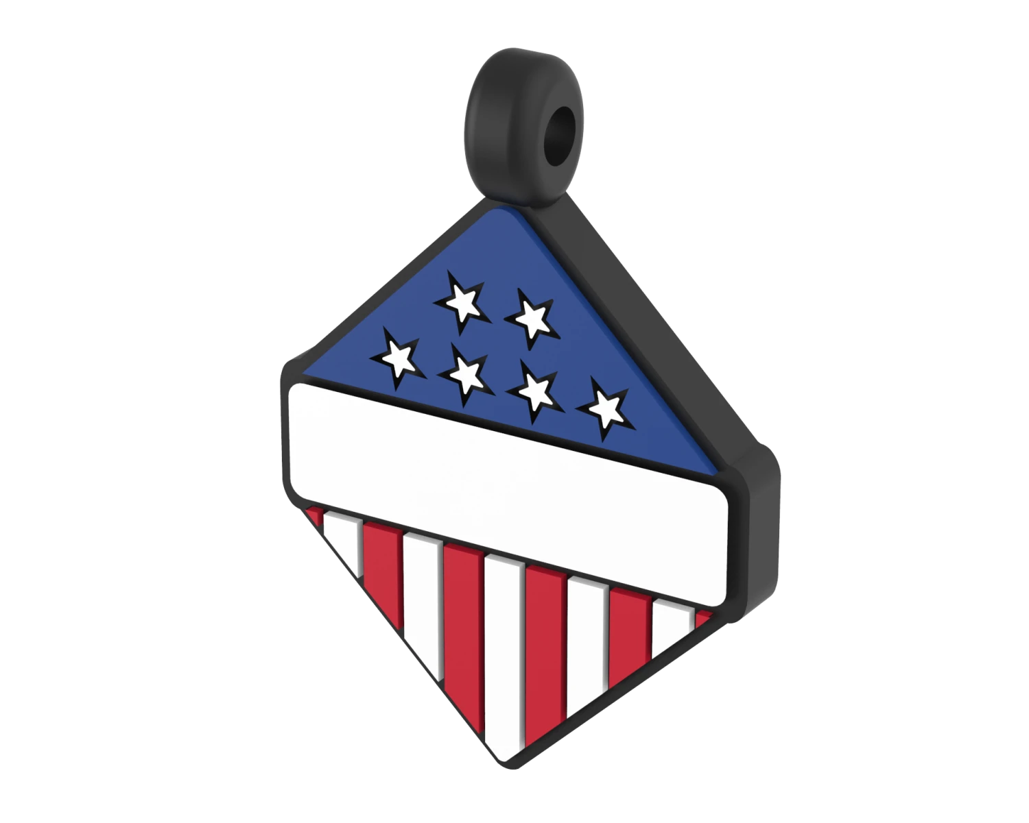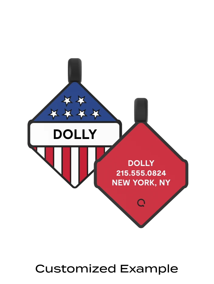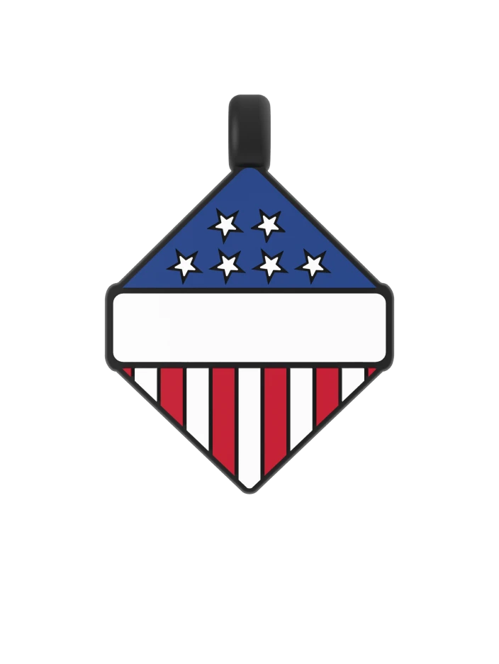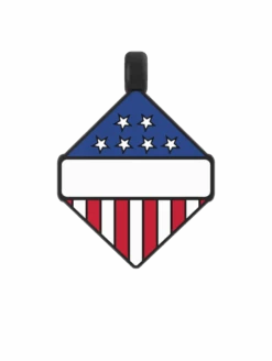 This jingle-free, adventure-ready Dog ID tag features an American flag design and can be customized on the front and back.