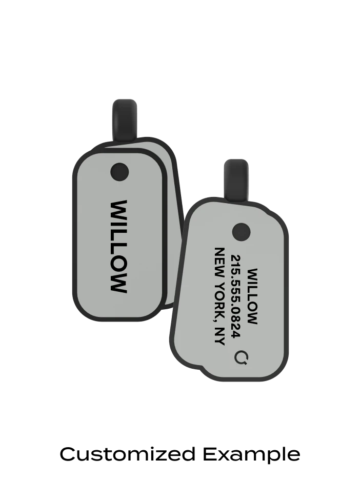 This jingle-free, adventure-ready Dog ID tag is modeled after traditional military dog tags, and can be customized on the front and back.