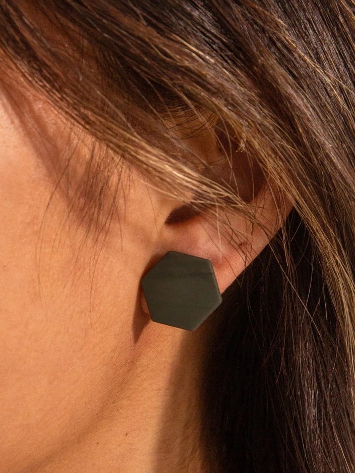Part of our Core Functional Jewelry collection, the Ion Earrings are crafted from tough, yet ultra-comfortable silicone, and are made to be worn through all kinds of movement. Our earring backs are engineered to encapsulate the 8mm surgical-grade rust-proof steel post in soft silicone for safe, comfortable wear. This geometric design is available in Pearl, Silver, Black, and Sage.