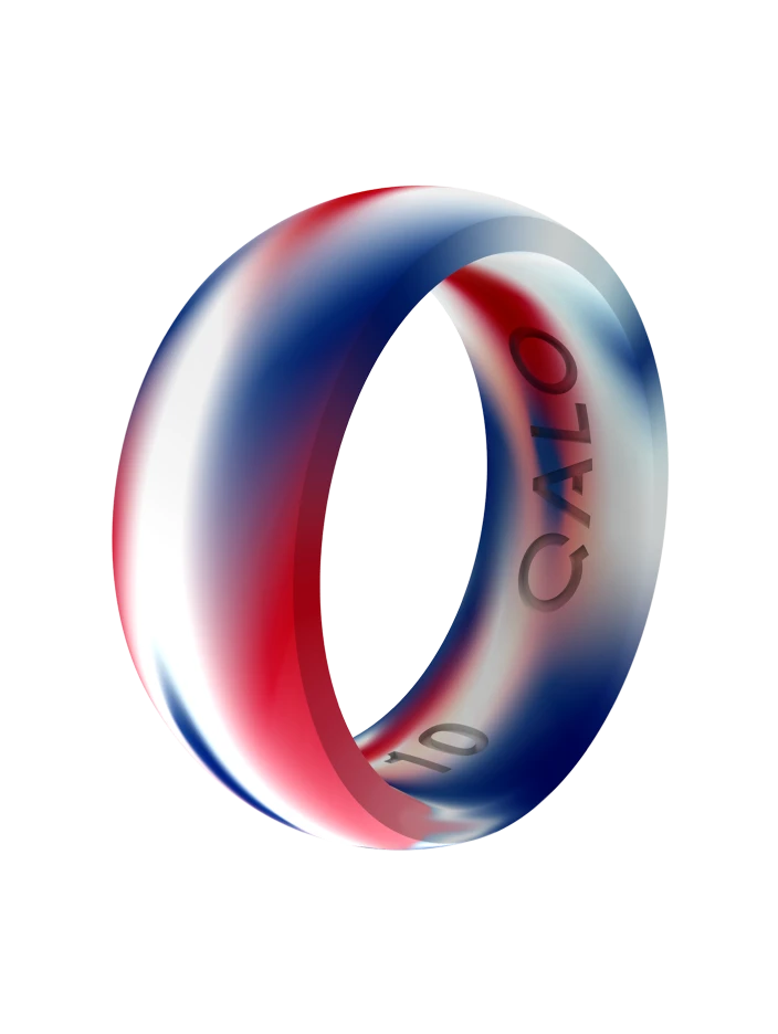 This red, white, and blue ring in a classic silhouette is crafted from premium quality silicone for timeless style, frictionless wear, and complete comfort.