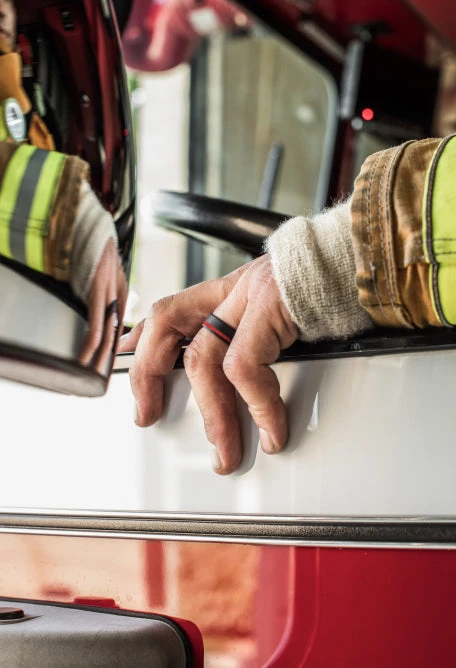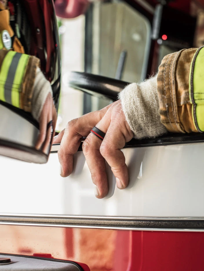 This QALO Gift Set includes the Men’s Thin Red Line ring and Unisex Modern Black ring.