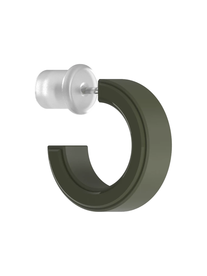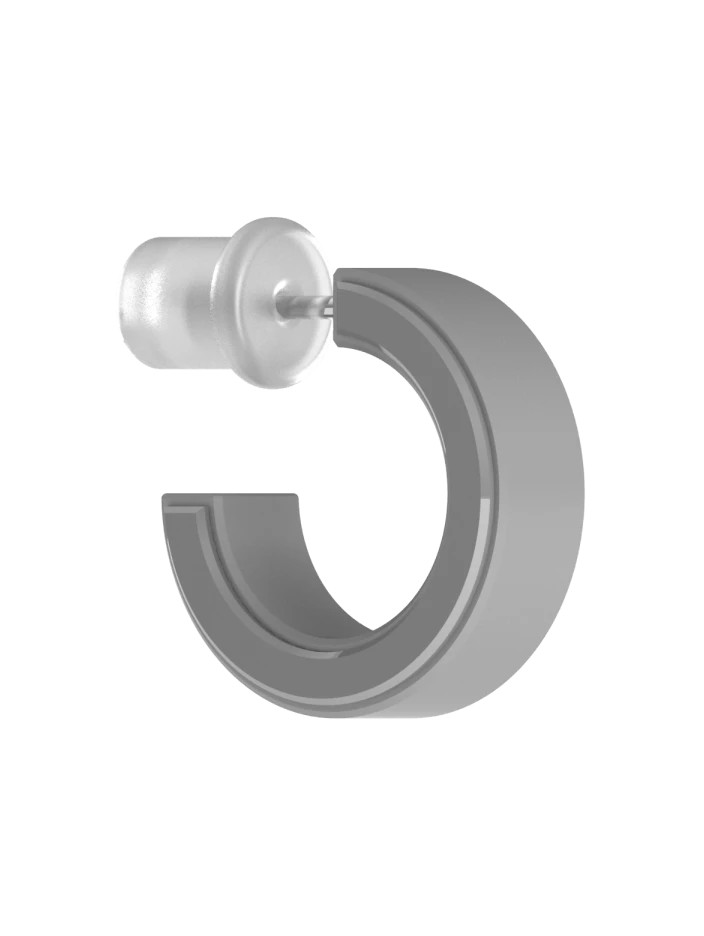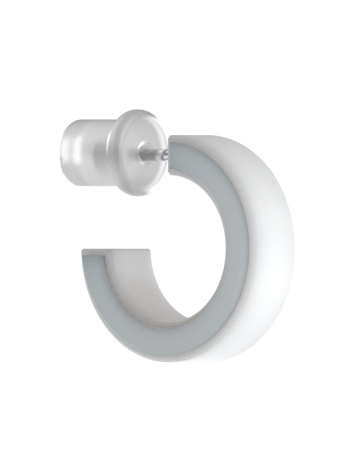 Part of our Core Functional Jewelry collection, the Step Earrings are crafted from tough, yet ultra-comfortable silicone, and are made to be worn through all kinds of movement. Our earring backs are engineered to encapsulate the 8mm surgical-grade rust-proof steel post in soft silicone for safe, comfortable wear. This classic semi-hoop design is available in Pearl, Silver, Black, and Sage.