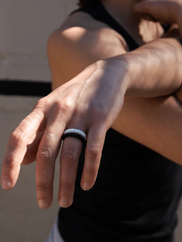 ThisĀ silicone ringĀ gift set includes aĀ UnisexĀ Marble Modern Silicone Ring, Women’s Strata Black and Aqua Arrow Silicone Ring, Women’s White Quartz Twist Stackable Silicone Ring and a Women’sĀ Jet Black Geo Stackable Silicone Ring.