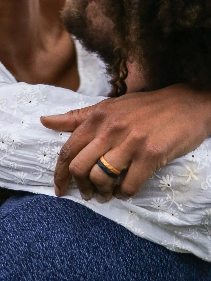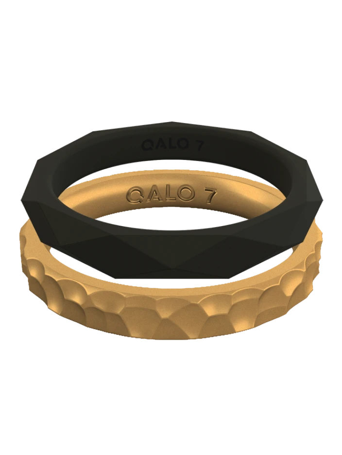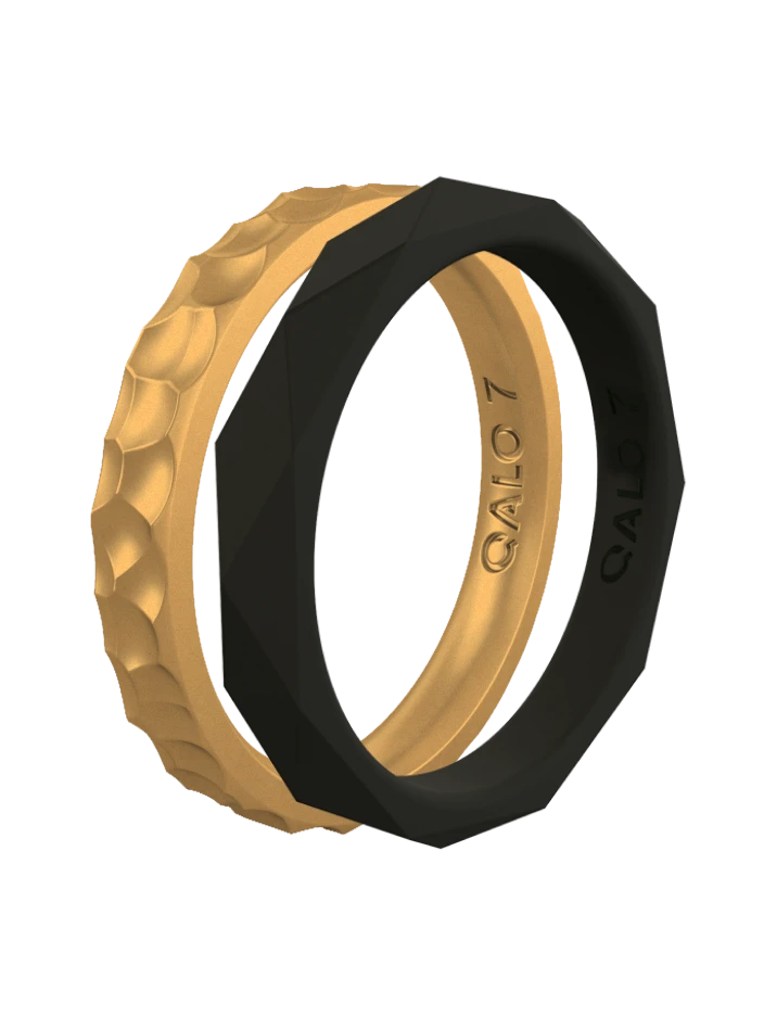This stackable set includes the Black Geo Stackable and Gold Metallic Forged Stackable.