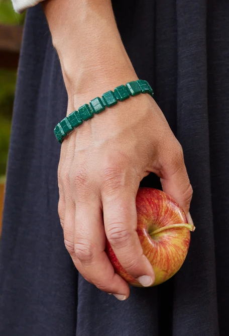 The Emme bracelet is available in a shimmering emerald or a subtly sparkling onyx, and pairs perfectly with our Emme earrings and Emme ring.