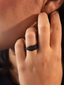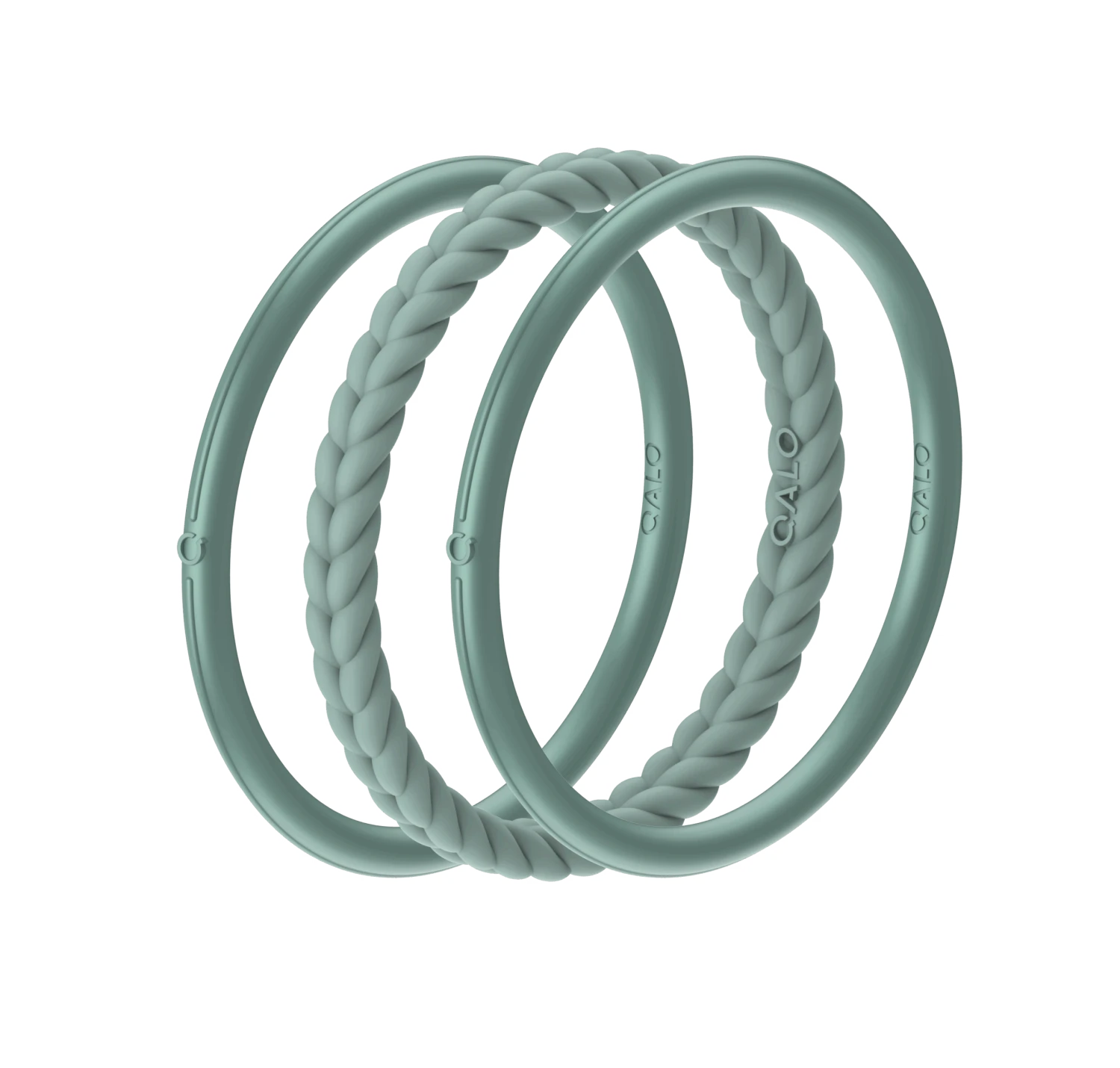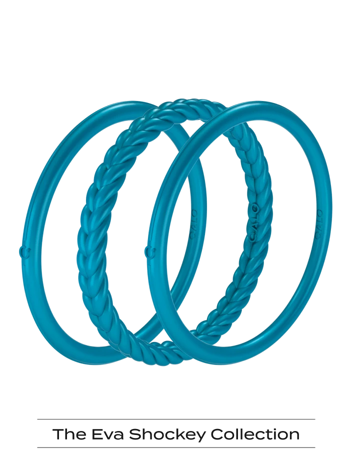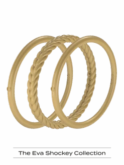 This set of three includes one braided silhouette, and two smooth silhouettes in gold or peacock blue.