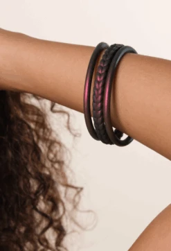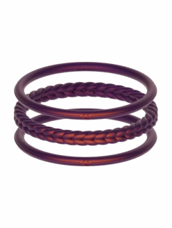 This set of three includes one braided silhouette, and two smooth silhouettes, all featuring an eye-catching reflective finish.