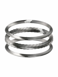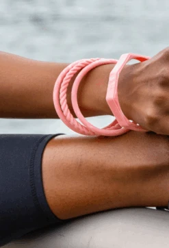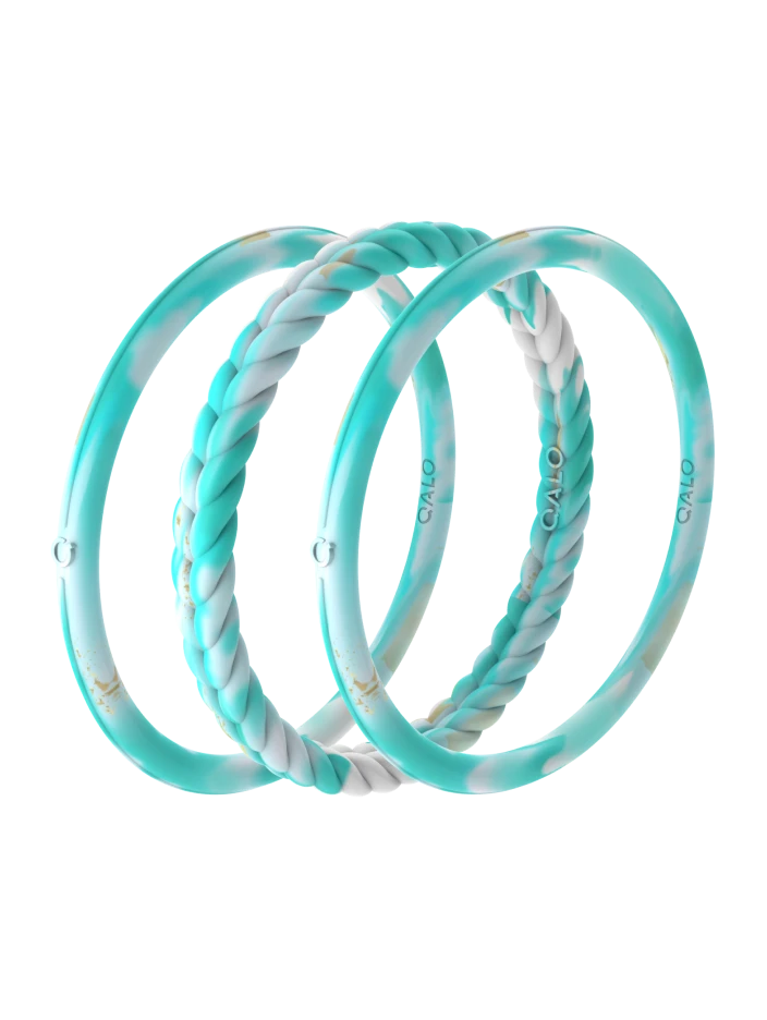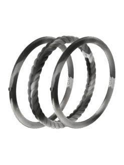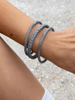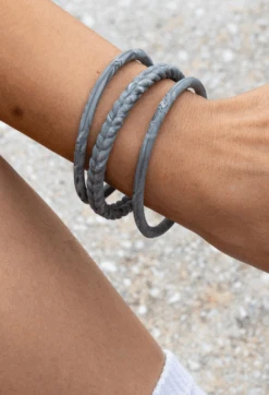 Part of our Natural Stone Functional Jewelry collection, the Essential Bangles are crafted from tough, yet ultra-comfortable silicone that captures the look of stone forged by the earth. This set of three includes one braided silhouette and two smooth silhouettes in 4 colors.