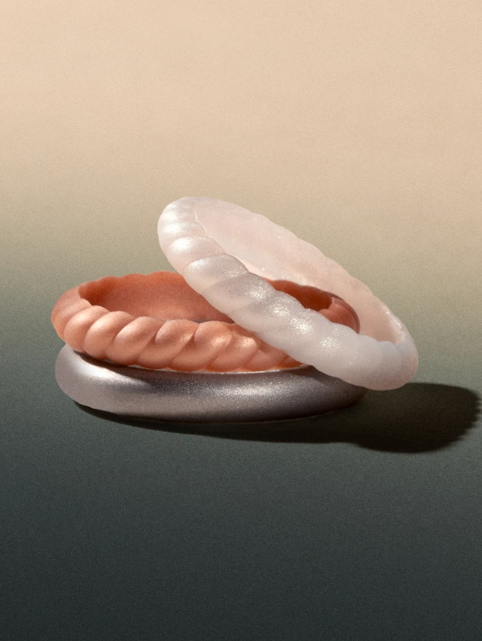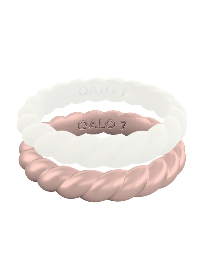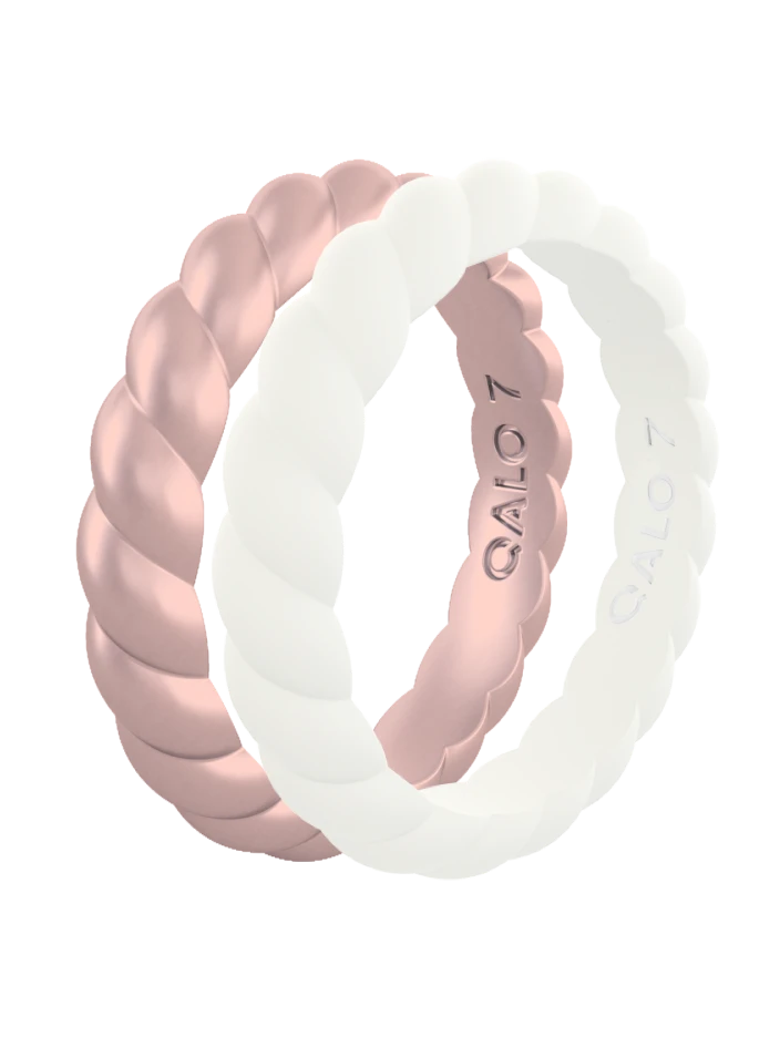 This stackable set includes the Rose Gold Metallic Twist Stackable & White Twist Stackable.