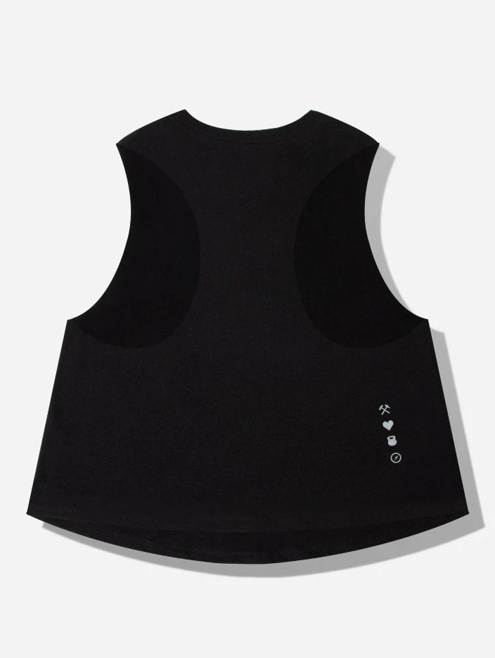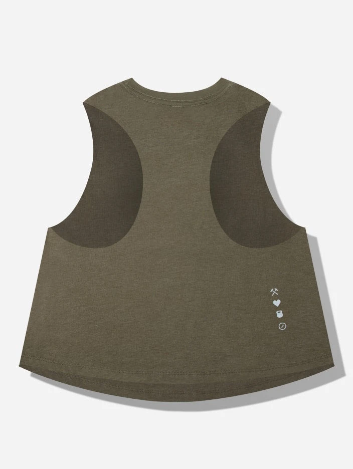 This women’s racerback cropped tank top features a relaxed fit. The modern, elongated armholes and the racerback with raw edge details make this tank a must-have.